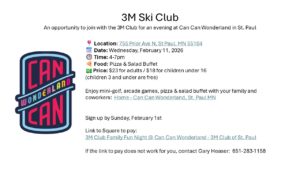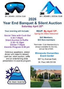 The Ski, Snowboard, and Social Club for 3Mers and friends – all are welcome! We are 58% 3Mers and 42% friends.